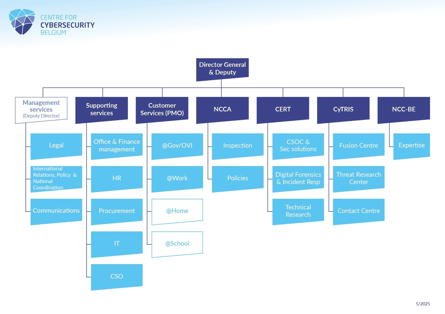 Het CCB wordt geleid door directeur-generaal Miguel De Bruycker en adjunct-directeur-generaal Phédra Clouner.